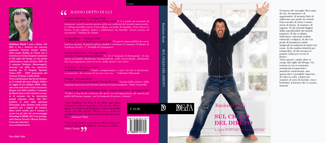 Emiliano Reali, Emiliano Reali, romano, scrittore e sceneggiatore. Ha scritto numerosi libri per bambini e fantasy, col regista Maurizio Rigatti la sceneggiatura del corto Santallegria con Serena Grandi e Monica Scattini. Nel 2012 pubblica, con il patrocinio di Roma Capitale, i racconti Sul ciglio del dirupo, raccolta poi pubblicata in America, presentata alla New York University e all’Ambasciata italiana di Washington che sarà inserita come testo di lettura alla Georgetown University nel seminario Text in Context: Theories and Approaches.