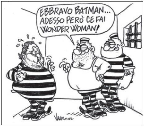 “E’ una vignetta che fa schifo, semplicemente ignobile”. Questo il commento di Aurelio Mancuso, attivista per i diritti LGBT e presidente di Equality Italia, alla vignetta disegnata da Vauro e pubblicata oggi su Il Fatto Quotidiano. Lo schizzo rappresenta Franco Fiorito, ex capogruppo del Pdl nel Lazio, nel panni del carcerato. Con lui in cella altri due carcerati, che lo guardano con fare minaccioso. “Ebbravo Batman… Adesso però ce fai Wonder Woman”.