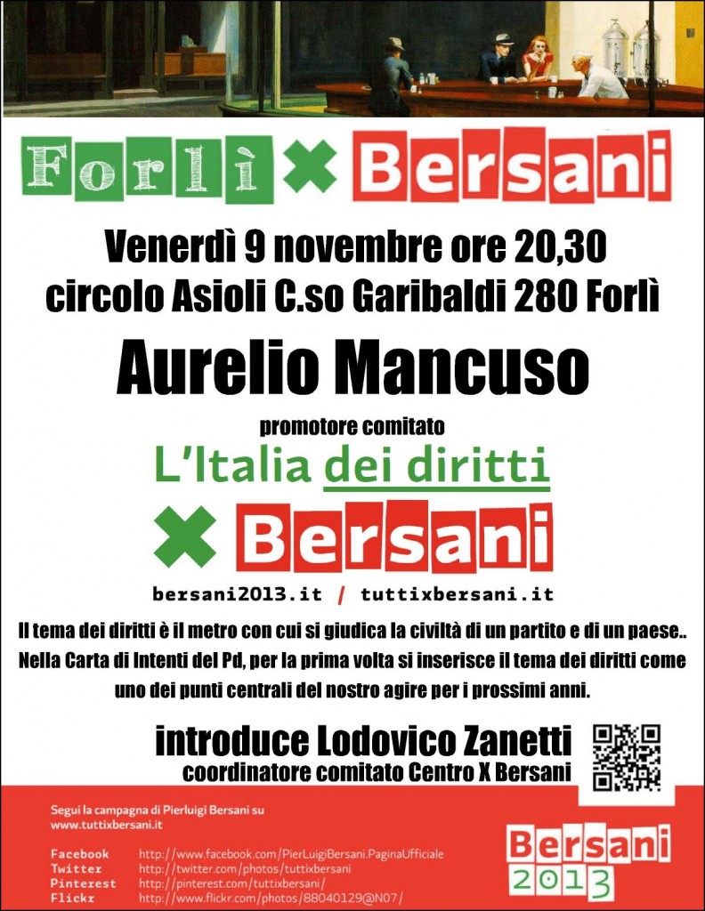 Presentazione venerdì 9 novembre a Forlì del Documento “L’Italia dei Diritti per Bersani”